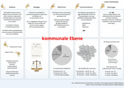 Bürgerparlamente setzen sich also aus politisch interessierten und engagierten Bürger*innen zusammen. Sie stimmen nicht nur über wichtige Fragen ab, sondern wählen auch jemanden aus, der ihr Vertrauen genießt und bereit ist, die Entscheidungen der Bürgerparlamente öffentlich zu vertreten, z.B. im Bundestag oder im Rat der Stadt. Bürgerabgeordnete! Interesse geweckt?