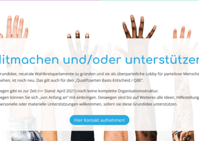 Die Bürgerparlamente (… vormals auch ‚Wahlkreisparlamente‘ oder: ‚Schule der Demokratie‘ genannt) sollen den gesellschaftspolitisch interessierten Bürger*innen einen überparteilichen Diskssionsrahmen bieten.